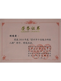 • 第五屆蘇州杰出人才獎(獎狀)