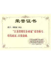 • 江蘇省明星企業(yè)家(獎狀)