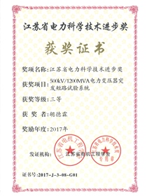 • 江蘇省電力科學(xué)技術(shù)進步獎三等獎