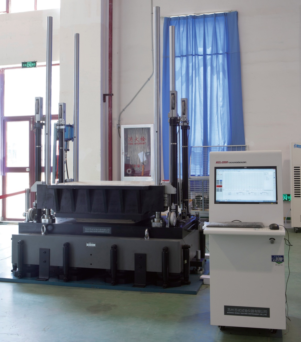 振動試驗——臺面840mm×800mm 頻率 垂直5~3000Hz,水平 5~1000Hz,最大加速度 垂直50g,水平8.57g;臺面2500mm×2500mm,加速度7g,承重5t。