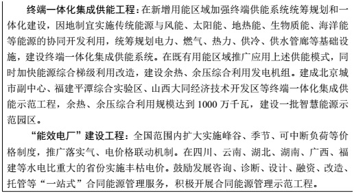 工程, 實施城市配電網(wǎng)建設(shè)改造行動, 強(qiáng)化統(tǒng)一規(guī)劃, 健全技術(shù)標(biāo)準(zhǔn), 適度超前建設(shè), 促進(jìn)城鄉(xiāng)網(wǎng)源協(xié)調(diào)發(fā)展。 統(tǒng)籌電網(wǎng)升級改造與電能替代, 滿足居民采暖領(lǐng)域電能替代。 積極推進(jìn)棚戶區(qū)改造配套熱電聯(lián)產(chǎn)機(jī)組建設(shè)。 加快天然氣支線管網(wǎng)建設(shè), 擴(kuò)大管網(wǎng)覆蓋范圍。 在天然氣管網(wǎng)未覆蓋地區(qū)推進(jìn)液化天然氣、 壓縮天然氣、 液化石油氣直供, 保障民生用氣。推動水電氣熱計量器具智能化升級改造, 加強(qiáng)能源資源精細(xì)化管理。 積極推進(jìn)城市地下綜合管廊建設(shè), 鼓勵能源管網(wǎng)與通信、 供水等管線統(tǒng)一規(guī)劃、 設(shè)計和施工, 促進(jìn)城市空間集約化利用。