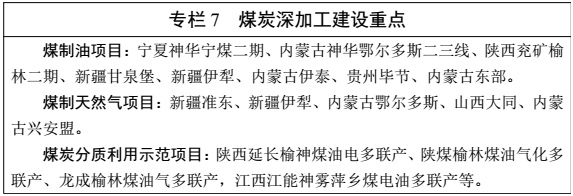 ——煤炭深加工。 按照國家能源戰(zhàn)略技術(shù)儲備和產(chǎn)能儲備示范工程的定位, 合理控制發(fā)展節(jié)奏, 強(qiáng)化技術(shù)創(chuàng)新和市場風(fēng)險評估, 嚴(yán)格落實環(huán)保準(zhǔn)入條件, 有序發(fā)展煤炭深加工,穩(wěn)妥推進(jìn)煤制燃料、 煤制烯烴等升級示范, 增強(qiáng)項目競爭力和抗風(fēng)險能力。 嚴(yán)格執(zhí)行能效、 環(huán)保、 節(jié)水和裝備自主化等標(biāo)準(zhǔn), 積極探索煤炭深加工與煉油、 石化、 電力等產(chǎn)業(yè)有機(jī)融合的創(chuàng)新發(fā)展模式, 力爭實現(xiàn)長期穩(wěn)定高水平運(yùn)行。 “ 十三五” 期間, 煤制油、 煤制天然氣生產(chǎn)能力達(dá)到 1300 萬噸和 170 億立方米左右。