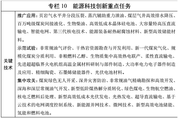 專欄 10 能源科技創(chuàng)新重點任務(wù)