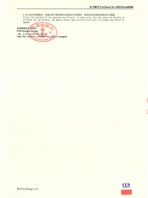 • CHINA CLASSIFICATION SOCIETY CERTIFICATE OF TEST AGENCY APPROVAL-Electrical products (back)