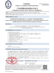 • CHINA CLASSIFICATION SOCIETY CERTIFICATE OF TEST AGENCY APPROVAL-Electrical products (front)